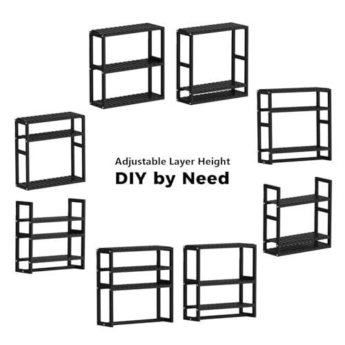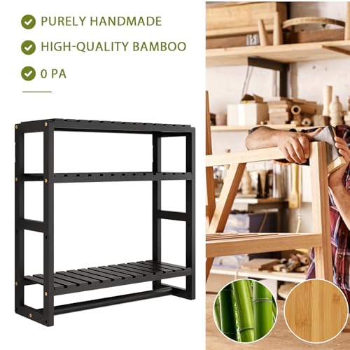Bamworld Bathroom Shelf Storage Adjustable Bamboo shelf 3-Tiered Over Toilet Rack Bathroom Organizer for Space-Saving Wall Mount Stand Used in the Living Room (Black)