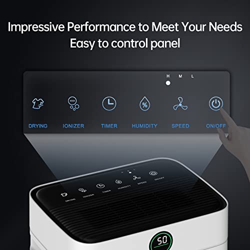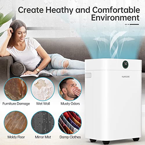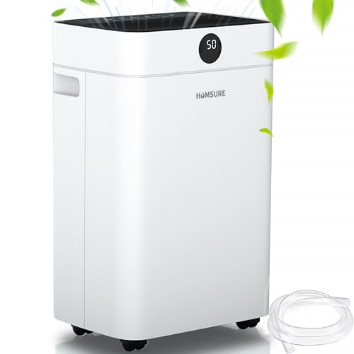 HUMSURE Dehumidifier 25L, Dehumidifiers for Home with 24 Hour Timer, Auto Defrost, Ionizer, Continuous Drainage Dehumidifier for Bedroom Basements Bathroom