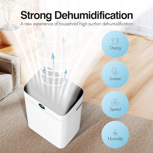 • 【High-Capacity 25L/Day Dehumidification】Experience superior moisture control with our powerful 25L dehumidifier, capable of removing up to 25L of water daily (at 90% RH, 95°F) while adjusting humidity from 40% to 80%. Ideal as a dehumidifier for home use in spaces up to 4500 sq ft. Perfect for basement, garage, office, and laundry room applications, this model includes a drain hose for continuous operation.